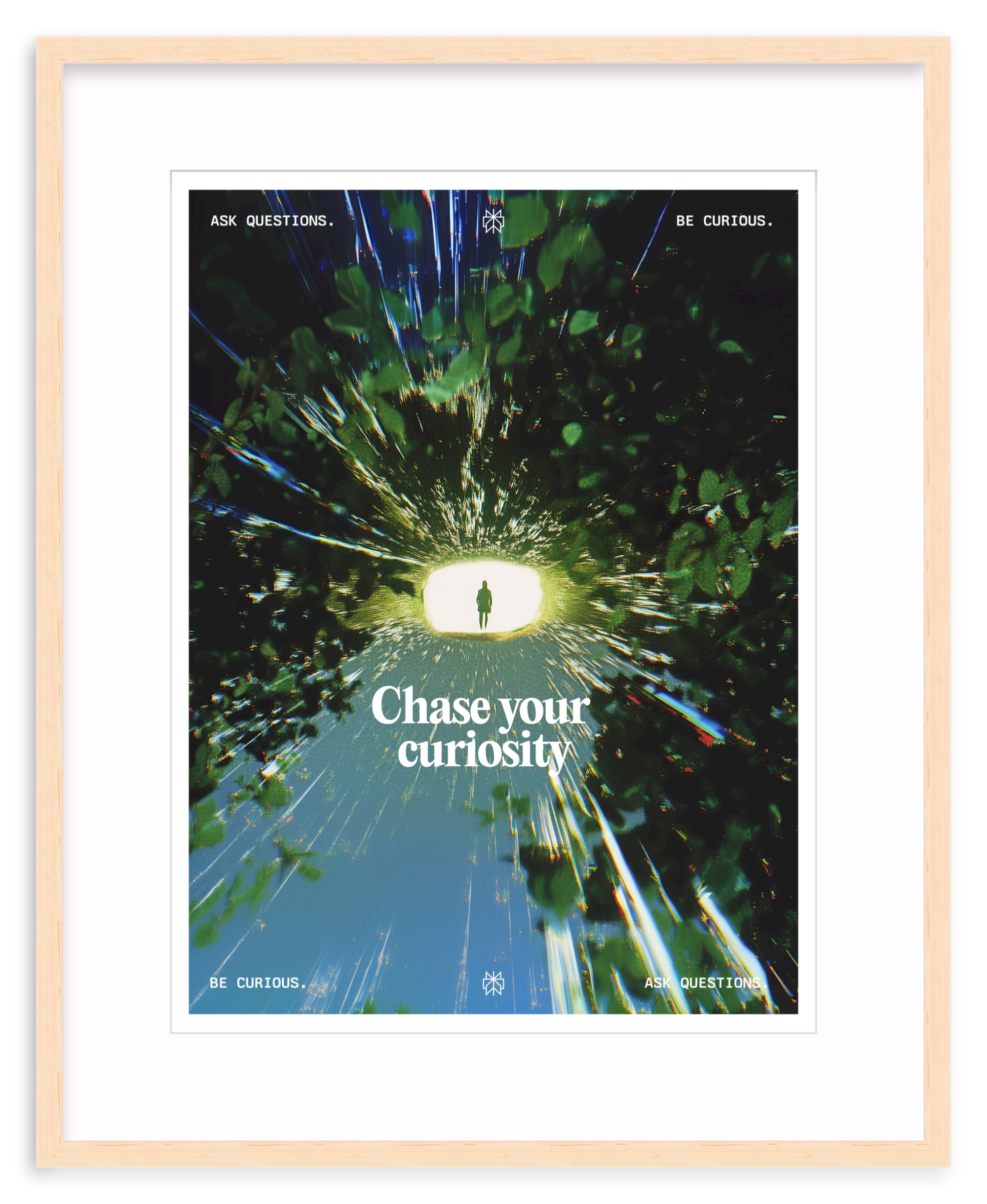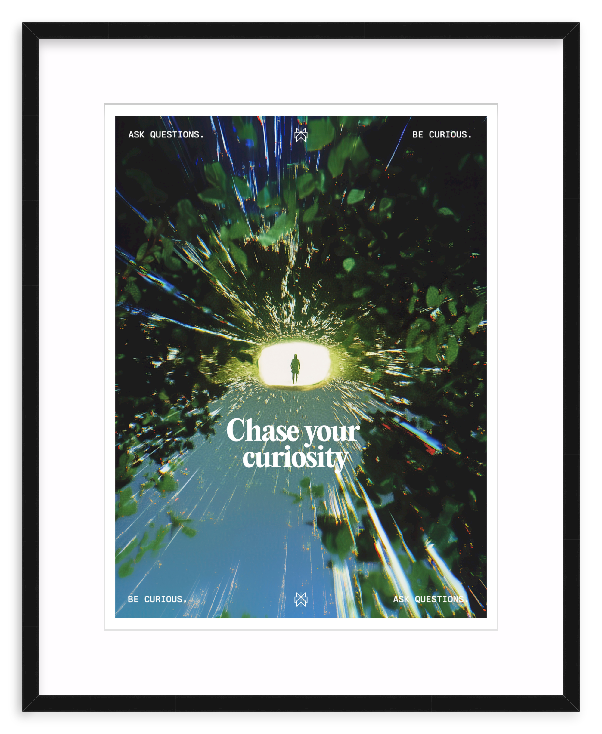 Experience what happens when curiosity meets craft. The 'Chase Your Curiosity' Framed Print is an ode to inquisitive minds, and reminds us that curiosity remains our most reliable guide in navigating unknown intellectual territories.
