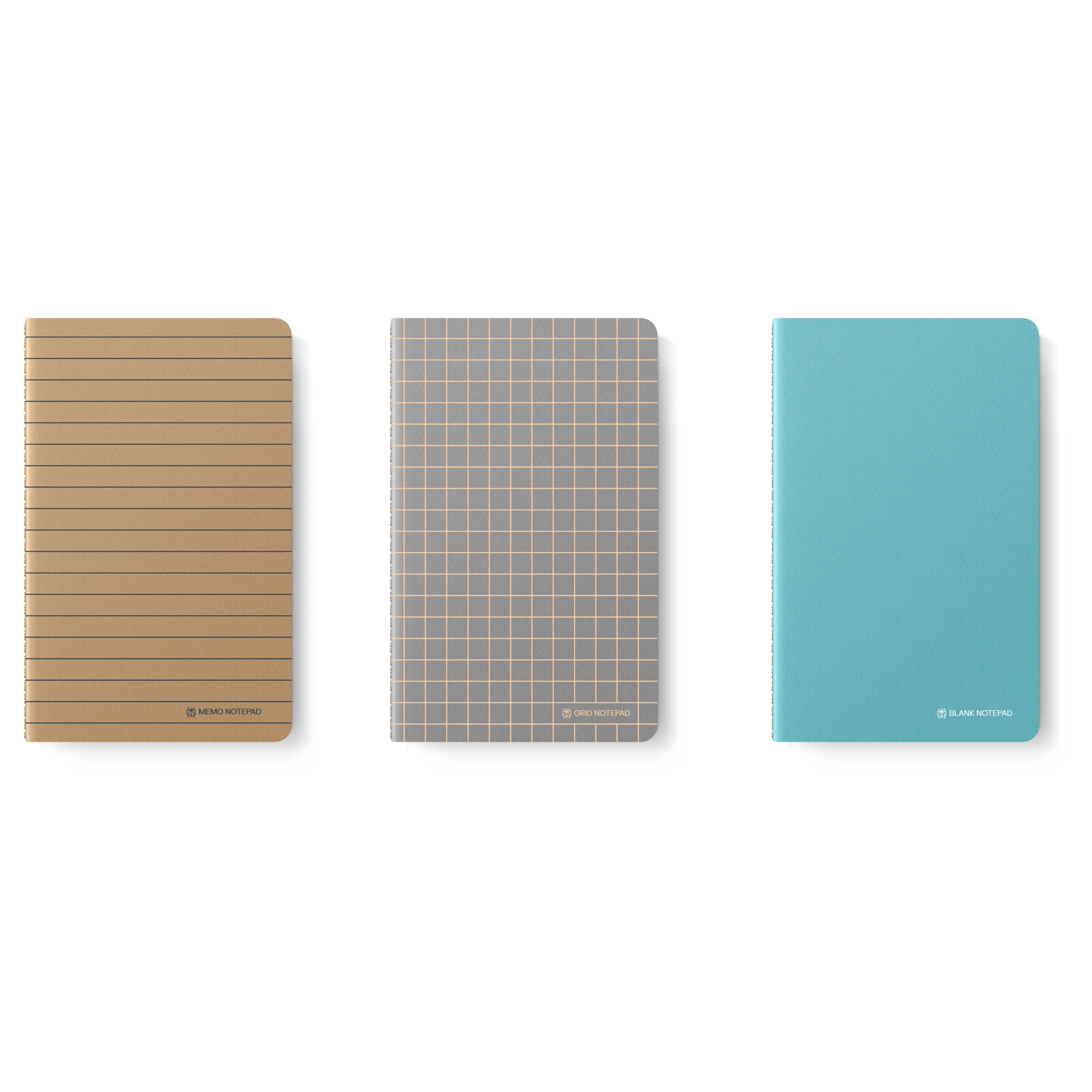 Curiosity needs a canvas. Our 3-Pack of Notepads provide a necessary foundation for capturing all of your thoughts at various stages of refinement. The premium set is comprised of blank, dot grid, and memo style paper. The perfect analog complement to digital exploration.