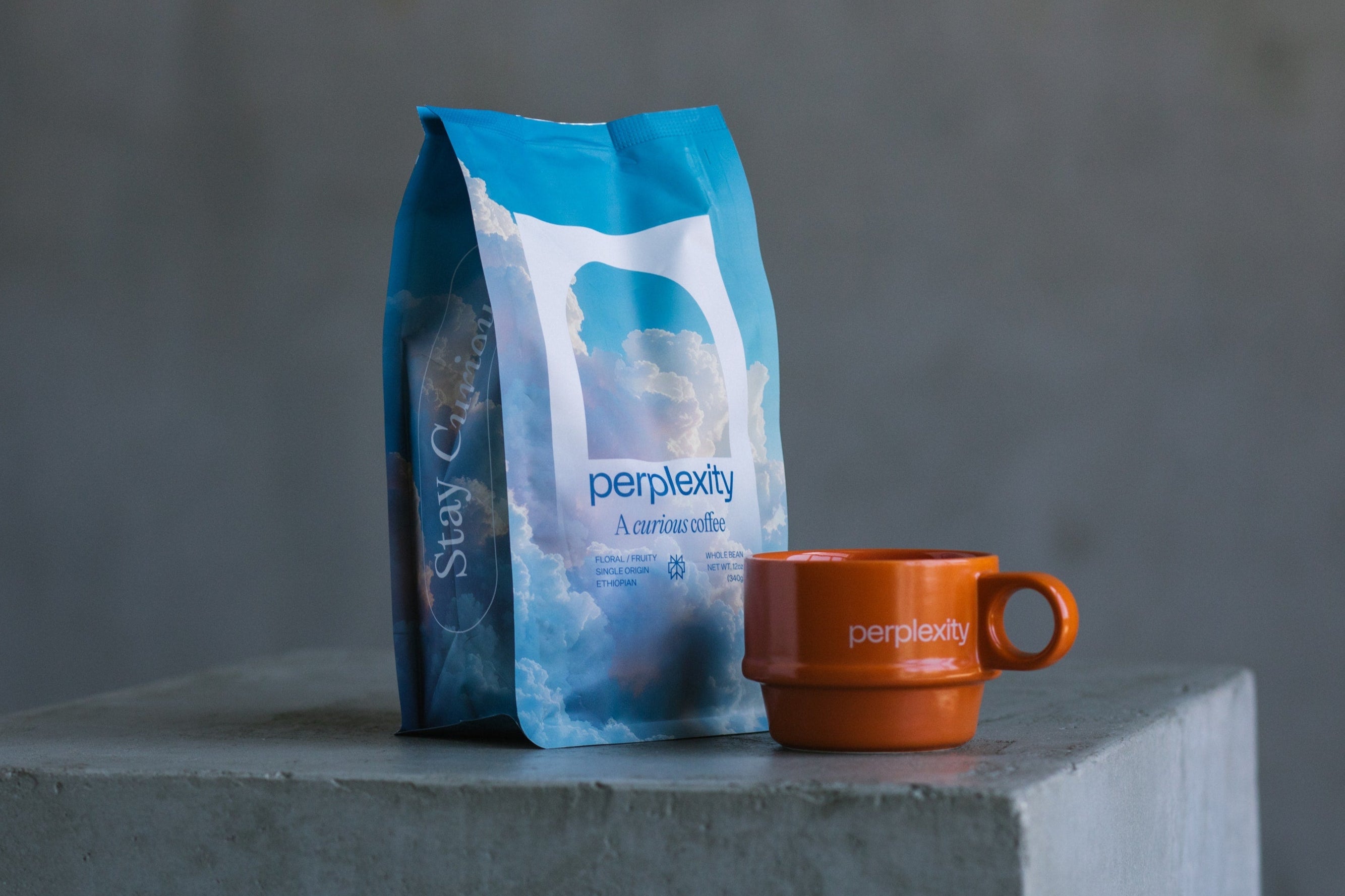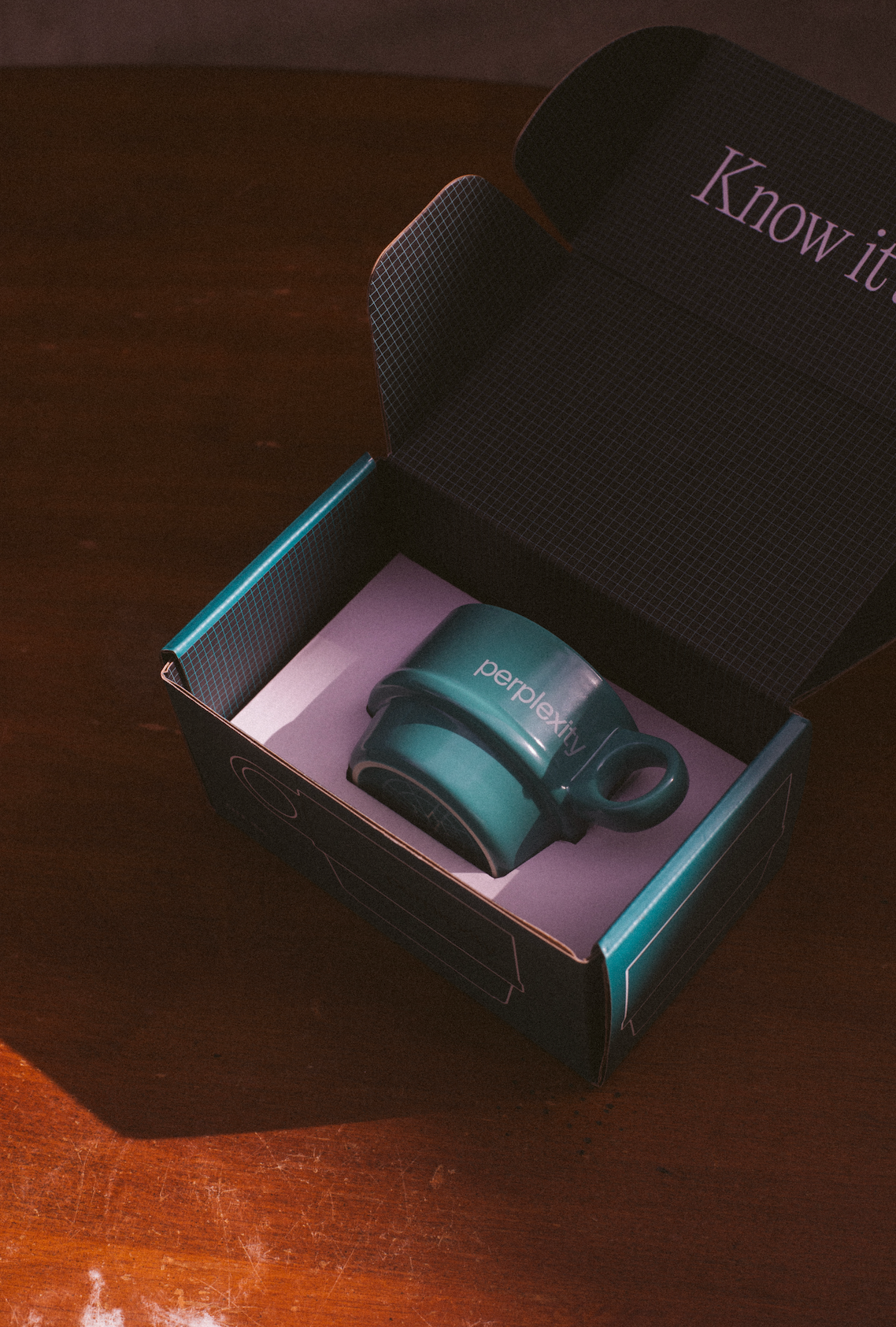 - Perplexity logo artwork on side of mugs