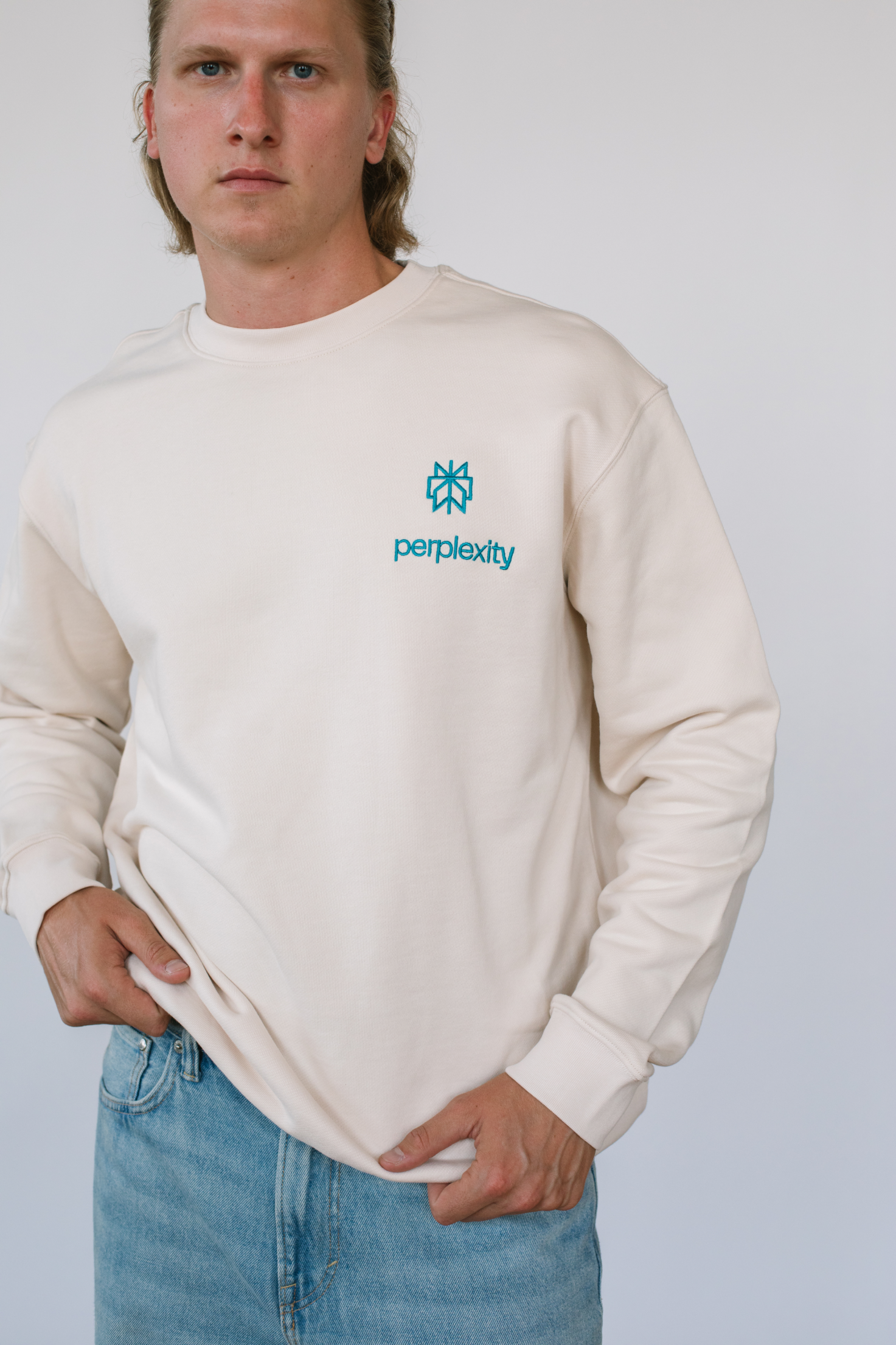 - Perplexity logo artwork embroidered on the front