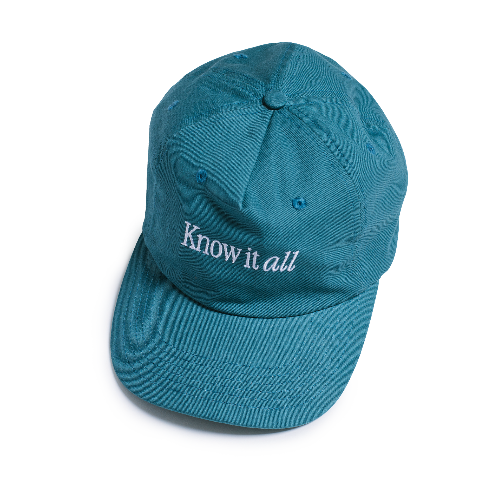 Knowledge, crowned. Our signature cotton cap transforms confidence into a wearable form. The "Know It All" embroidered statement is reminder that the answers are always within our reach. Premium construction meets minimalist design in this essential piece for those who stay curious.
